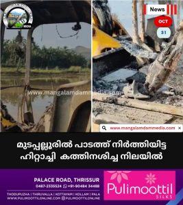 മുടപ്പല്ലൂർ : പാടത്ത് നിർത്തിയിട്ട ഹിറ്റാച്ചി കത്തി നശിച്ച നിലയില്. മുടപ്പല്ലൂർ കറാംപാടത്താണ് സംഭവം. ചിറ്റിലഞ്ചേരി കൊടിയങ്ങാട് പ്രമോദിന്റെ...