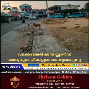 വടക്കഞ്ചേരി: പ്രിയദർശിനി ബസ് സ്റ്റാൻഡും സമീപത്തെ സാംസ്കാരിക വകുപ്പിന്റെ ‘നാട്ടരങ്ങ്’ ഗ്രൗണ്ടും തെരുവുനായ്ക്കൾ കൈയടക്കുന്നു. ഇരുപതിലധികം നായകളാണ് സ്റ്റാൻഡിന്...