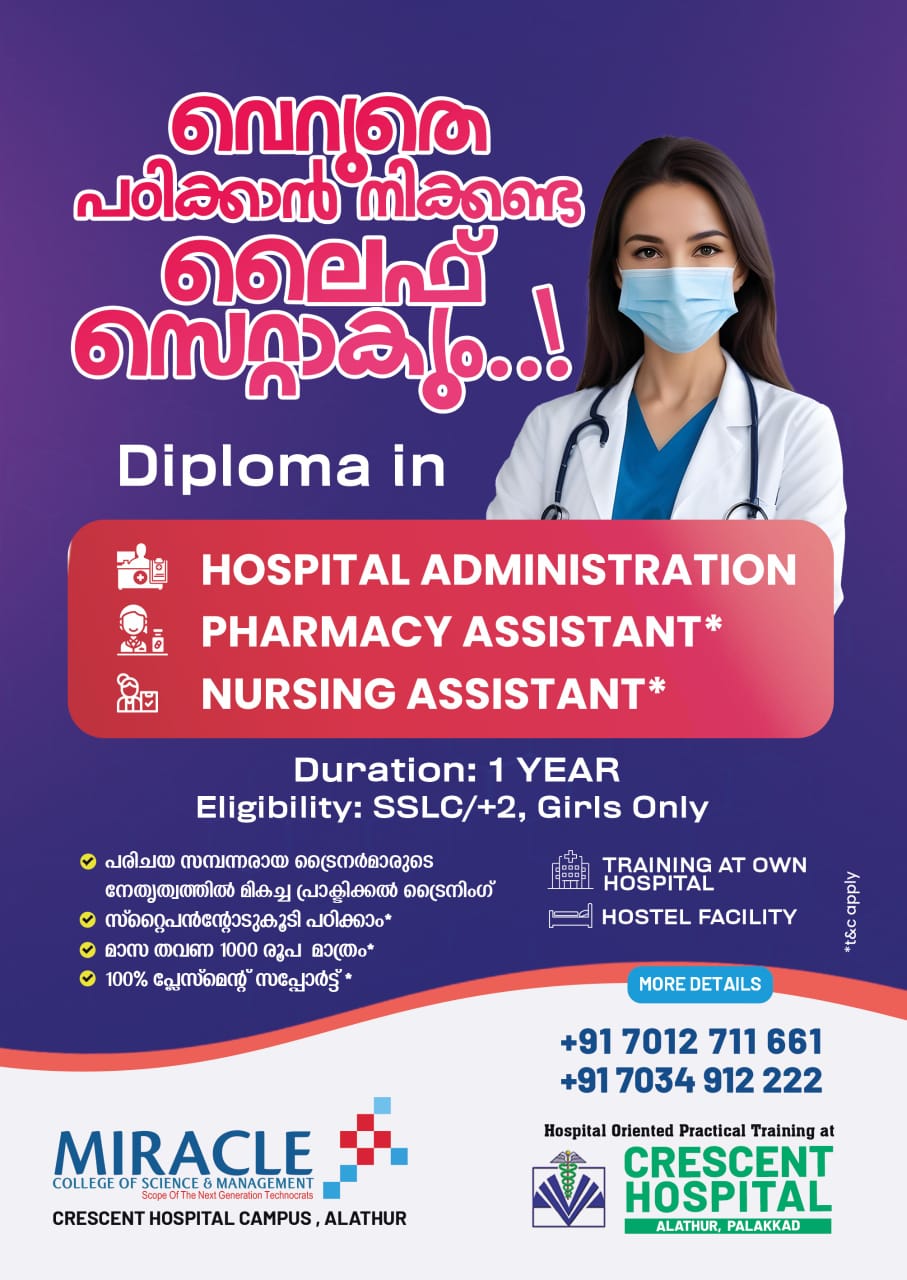 CENTRAL GOVERNMENT UGC അംഗീകൃത യൂണിവേഴ്സിറ്റിയുടെ പാരാമെഡിക്കൽ ഡിഗ്രി /ഡിപ്ലോമ കോഴ്സുകൾ 👩🏻⚕️പെൺകുട്ടികൾക്ക് നമ്മുടെ ആലത്തൂർ CRESCENT ഹോസ്പിറ്റലിൽ പഠിക്കാം…