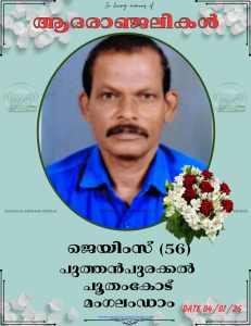 മകൻ ബിനീഷ്(24) ആണു മരിച്ചത്. ഒപ്പം യാത്ര ചെയ്ത സുശാന്തിൻ്റെ കാലിനു ഗുരുതര പരുക്കേറ്റു. ഇന്നലെ രാത്രി 8.30ന് നെന്മാറ അയിനംപാടം വളവിലായിരുന്നു അപകടം.