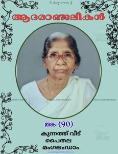 പൈതല കുന്നത്ത് വീട്ടിൽ പരേതനായ മാധവൻ ഭാര്യ തങ്ക അന്തരിച്ചു.