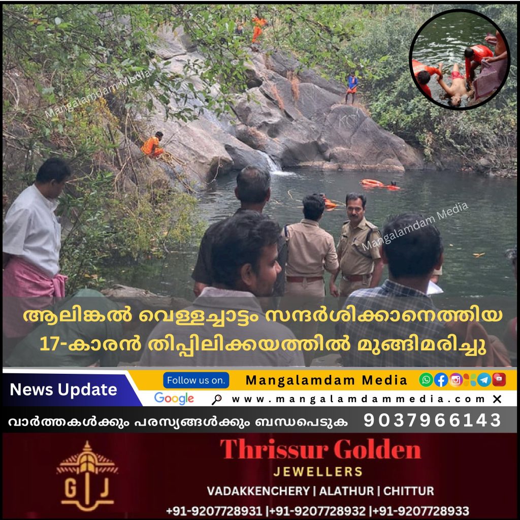 മംഗലംഡാം : ആലിങ്കൽ വെള്ളച്ചാട്ടം കാണാനെത്തിയ സംഘത്തിലെ 17-കാരൻ തിപ്പിലിക്കയം വെള്ളക്കെട്ടിൽ മുങ്ങിമരിച്ചു. തൃശ്ശൂർ കാളത്തോട് ചക്കാലത്തറ അക്മൽ (17) ആണ് മരിച്ചത്.ഇന്ന് രാവിലെയാണ് തൃശ്ശൂരിൽ നിന്നുള്ള 5 അംഗ സംഘത്തോടൊപ്പം അക്മൽ ആലിങ്കൽ വെള്ളച്ചാട്ടം കാണാനെത്തിയത്. ഇതിനിടെ തിപ്പിലിക്കയം വെള്ളക്കെട്ടിൽ അക്മൽ അപകടത്തിൽപ്പെടുകയായിരുന്നു. കൂടെയുണ്ടായിരുന്നവർ ഉടൻ തന്നെ വിവരം അറിയിച്ചതിനെ തുടർന്ന് മംഗലംഡാം പോലീസും അഗ്നിരക്ഷാസേനയും സ്ഥലത്തെത്തി തിരച്ചിൽ നടത്തി. രാവിലെ പത്തരയോടെയാണ് മൃതദേഹം കണ്ടെടുത്തത്.തുടർനടപടികൾക്ക് ശേഷം മൃതദേഹം ബന്ധുക്കൾക്ക് വിട്ടുനൽകും.”